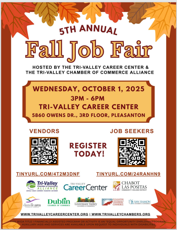 5th Annual Fall Job Fair hosted by the Tri-Valley Career Center & the Tri-Valley Chamber of Commerce Alliance